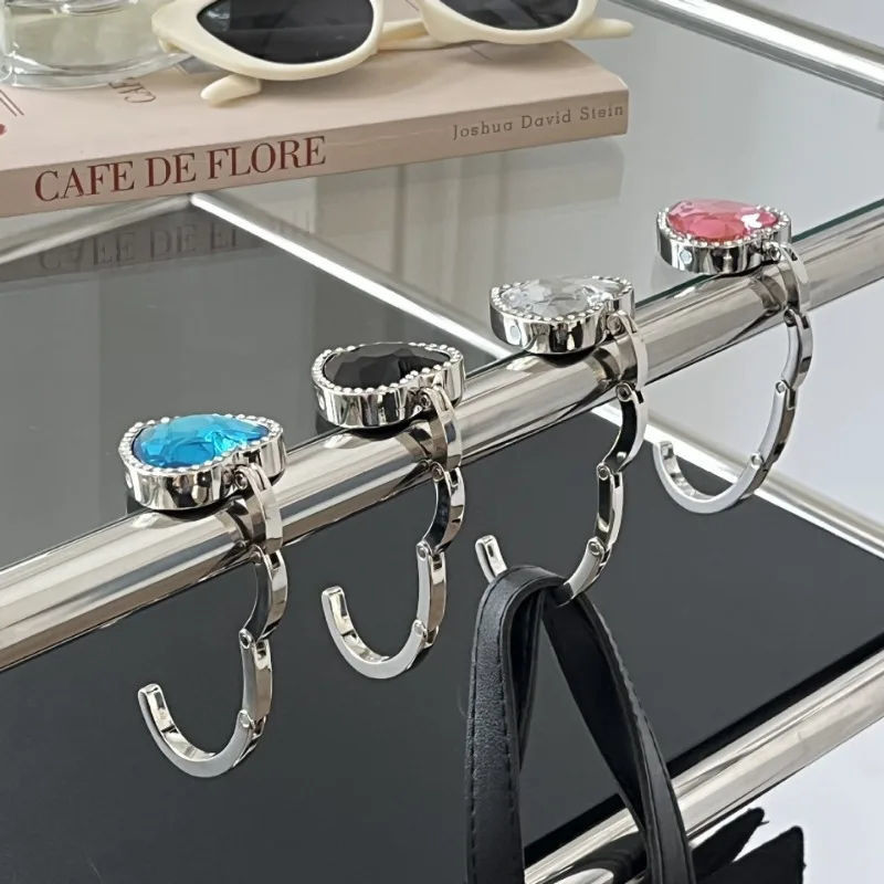 كريستال سبائك كيس يد قابل للطي خطاف شكل القلب كيس محمول خطاف كيس مؤخرة طاولة خطاف