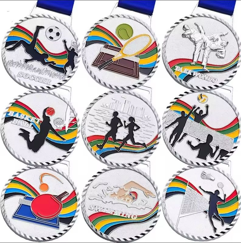 ميداليات رياضية عالية الجودة من سبيكة الزنك للفائزين في كرة القدم والمسابقات الرياضية. تصاميم قابلة للتخصيص متاحة لمختلف الأحداث الرياضية والهدايا الترويجية.